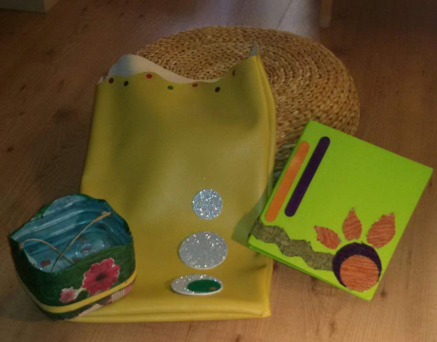 En este artístico taller cada niño/a elegirá realizar uno de estos tres talleres propuestos: cesta de colores, saco de juguetes o archivador, realizado con materiales como: goma-eva, telas, lana, papel de seda, papel charol, pegatinas, vinilo, rotuladores, etc.