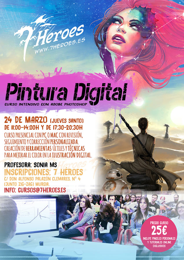 Al contrario que en las demás masterclass, en esta el alumno se traerá el portátil y su tableta gráfica para hacer un taller intensivo de 6 horas durante el jueves 24 de marzo (jueves santo).