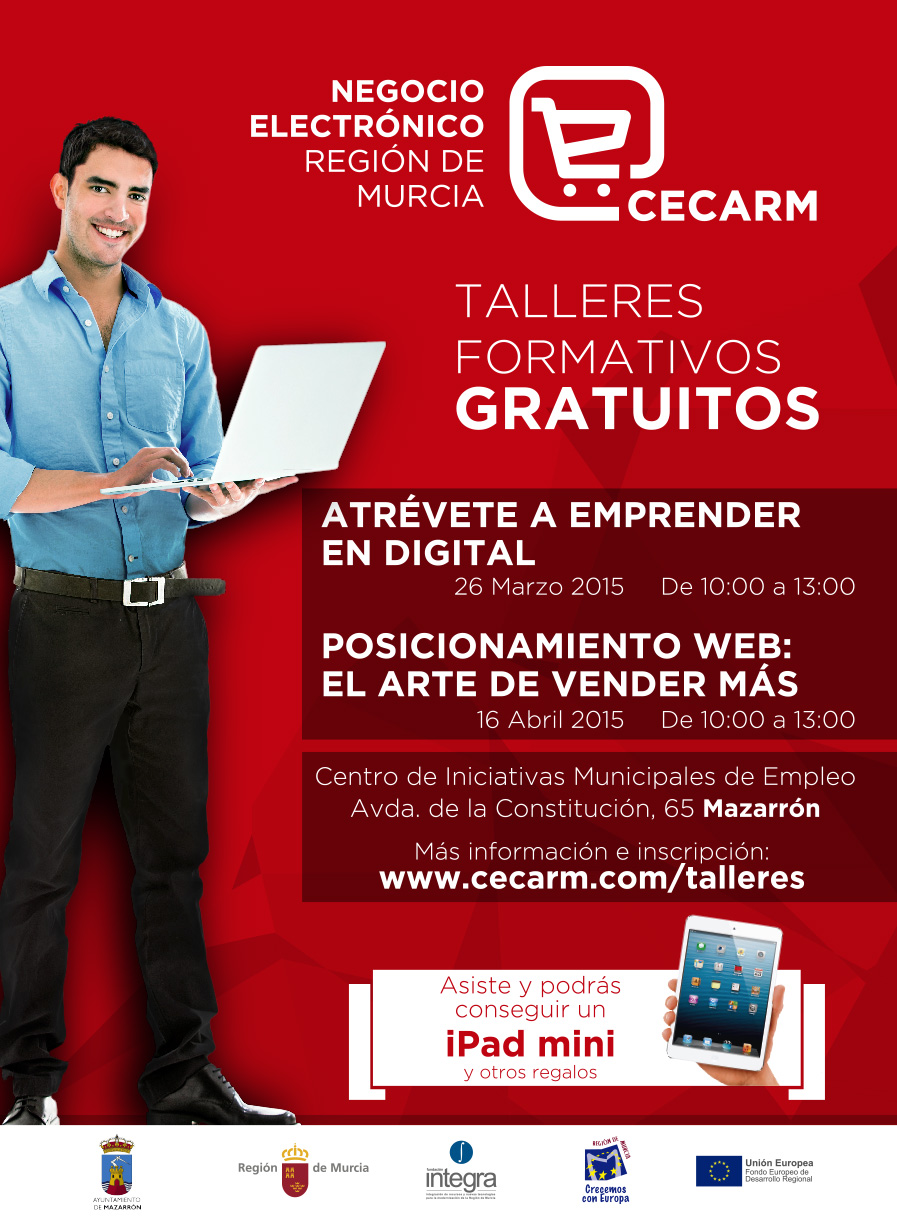 La Concejalía de Desarrollo de Empleo, Formación y Desarrollo Local del Ayuntamiento de Mazarrón ha programado dos nuevos talleres formativos gratuitos junto al Cecarm, el portal de Comercio, Factura y Negocio Electrónico de la Región de Murcia.
