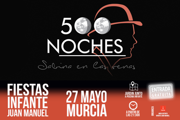 El sábado 27 de mayo a las 21:30 horas en la en la Piscina Infante Juan Manuel de Murcia se subirá al escenario 500 Noches, banda tributo a Joaquín Sabina que convierte sus conciertos en una auténtica experiencia y homenaje al cantautor. Con un impresionante parecido en la voz, 500 noches presenta un viaje a través de la música y la poesía de Sabina.