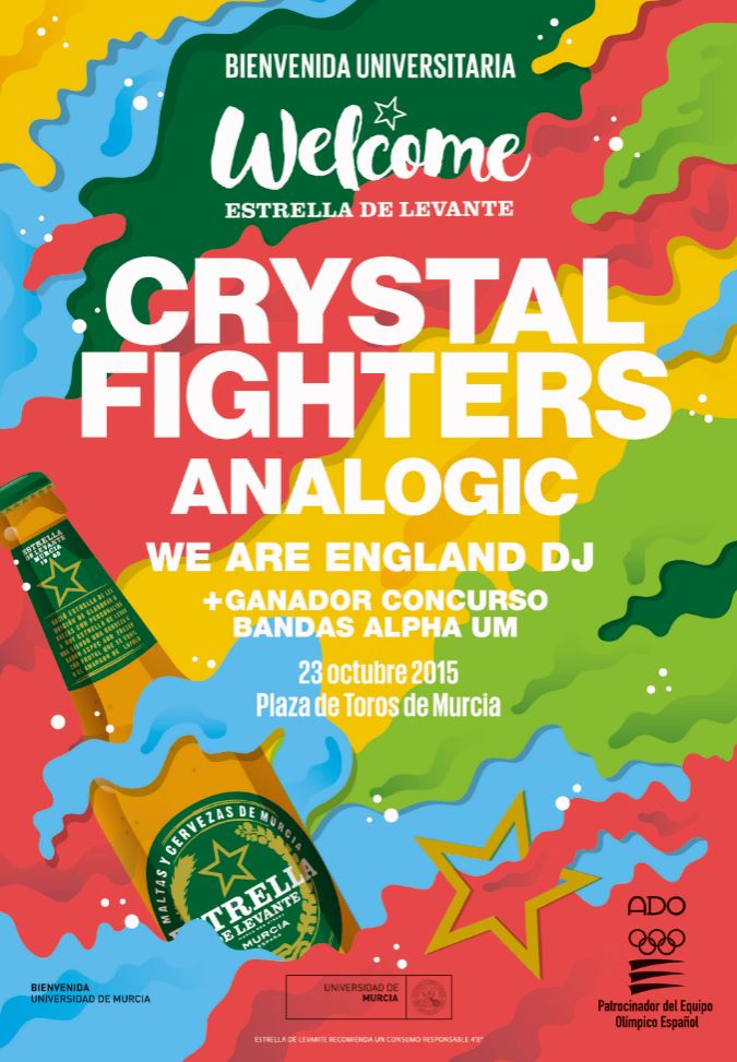 Como cada año, por estas fechas, Estrella Levante nos trae la habitual bienvenida universitaria con un "minifestival" de un día, por el que pasarán varios grupos musicales, con la diferencia de que este año será el primero en el que pasará de llamarse "BUM" (Bienvenida Universidad de Murcia") a llamarse "Welcome Estrella Levante".