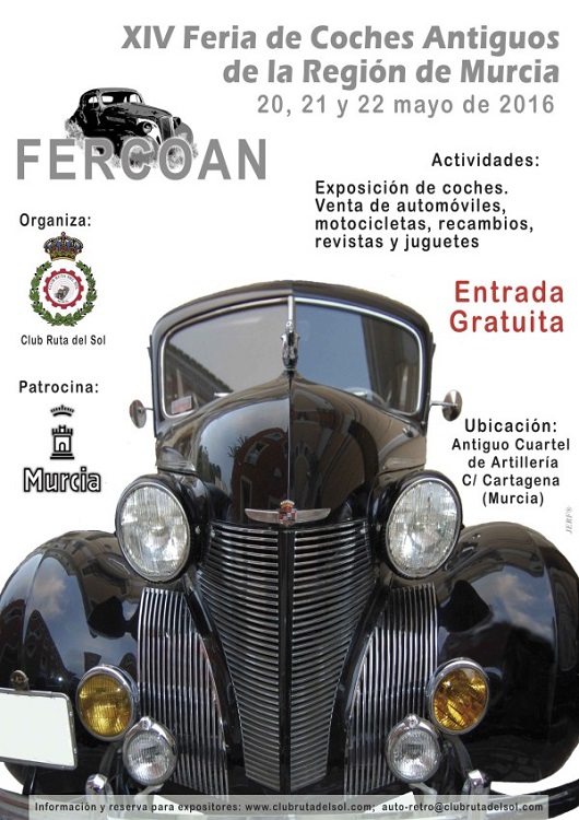 El Cuartel de Artillería albergará el próximo fin de semana la XIV Feria de Coches Antiguos de la Región de Murcia. La Feria, organizada por el Club Ruta del Sol, pretende dar a conocer la pasión de esta asociación por el mundo de los vehículos antiguos.